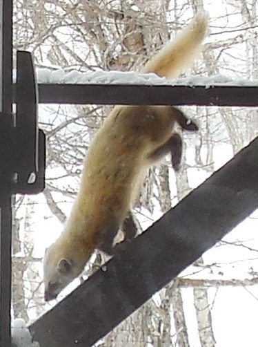 冬毛は、顔が白く身体が黄色できれいです。雑食で夏は動物食、初秋からは植物食が多いそうです。